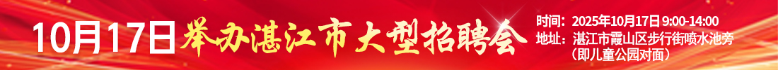 地址:湛江市赤坎區(qū)體育北路6號君臨世紀(jì)廣場5號樓2層02號商鋪 郵編:524000 郵箱:0759@0759job.com 中文網(wǎng)址:湛江人才網(wǎng).com
